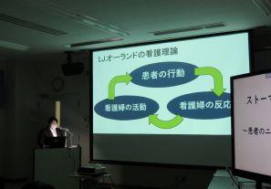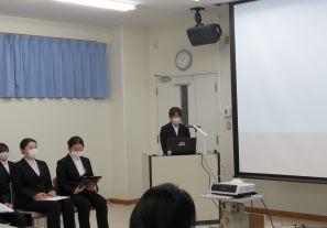 意見・体験発表では、『右大腿骨頸部骨折患者の看護を通して学んだこと~全身清拭・寝衣交換での工夫~』として、臨地実習での成果を発表しました。