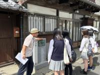 令和7年9月22日(月曜日)に「総合的な探究の時間」の一環として、普通科2年生が「真壁の町並み」を散策しました。 まずは、国の登録文化財となっている伊勢屋旅館にて昼食をいただきました。あつあつのメンチカツは大好評で、生徒たちの顔は自然と笑顔に。 その後は「町並み案内ボランティア」の皆さんの説明を聞きながら、重要伝統的建造物保存群地区を散策したり、市教育委員会文化財課の職員の方に講話をいただいたりしながら、真壁地区の特徴や歴史について学びました。ボランティアの皆さんと交流を図ったりしながら、有意義な一日を過ごすことができました。 |